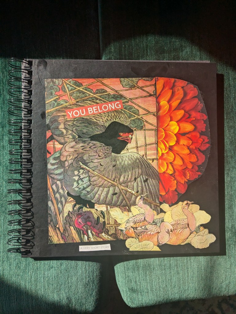 It’s another incredibly hot day in Edmonton. I carry a heavy, handmade basket down the street to Labo Coffee. The basket overflows with art supplies: scissors, glue, coloured paper, magazines, pastels, pencil crayons, felt-tip markers, etc. I don’t feel as nervous as I do for music performances, so I’m grateful. I remind myself of why I’m doing this.